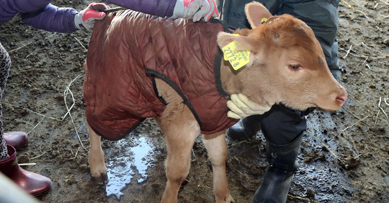 As biting cold continues nationwide for several days, some dairy farms even dressed their young calves in jackets.