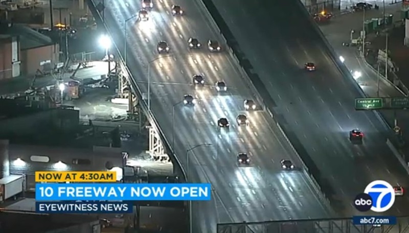 The stretch of the 10 Freeway in downtown Los Angeles, closed since a November 11 arson fire damaged it, reopened in both directions on November 20, the California Highway Patrol reported.