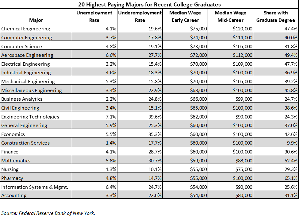 20 Highest-Paying Majors for Recent College Graduates