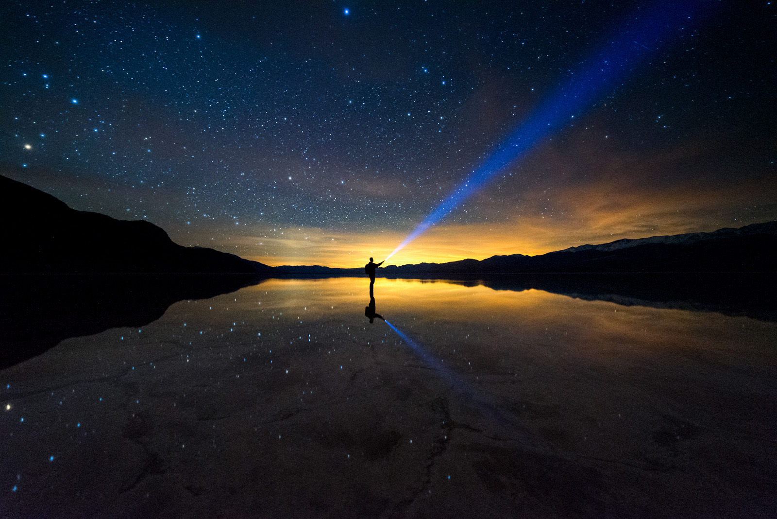“If you go out at night, sometimes you can see the sparkling stars reflecting in the calm water.” @Death Valley