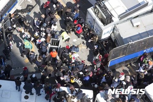 According to the Seoul Police Agency, dispute occurred between the protesters and police officers when the protesters tried to get into the constitutional court after the court decided that Park should be removed from office.