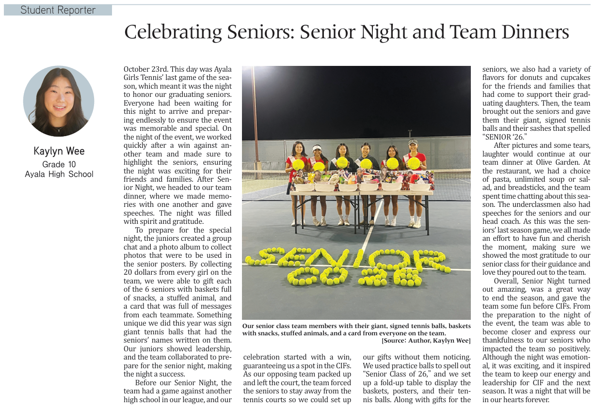 Celebrating Seniors: Senior Night and Team Dinners (by Kaylyn Wee)
