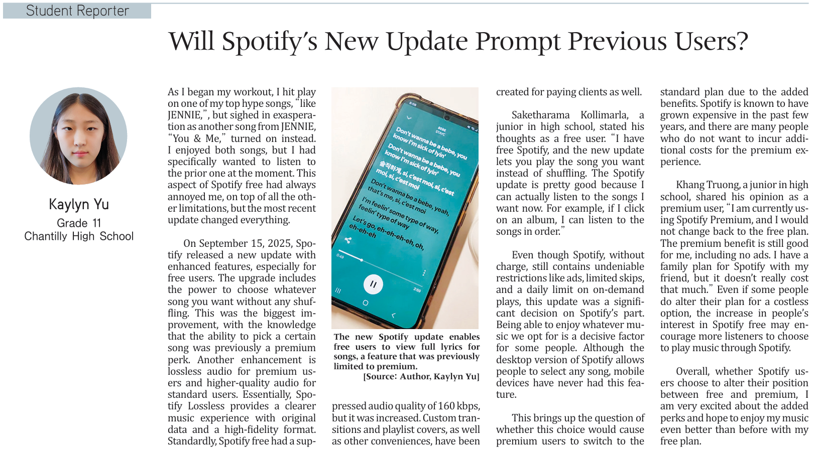 Will Spotify’s New Update Prompt Previous Users? (by Kaylyn Yu)