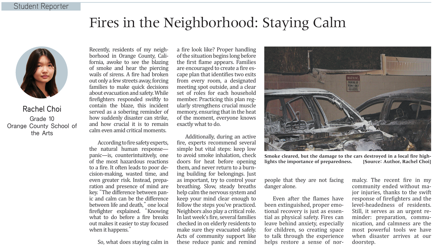 Fires in the Neighborhood: Staying Calm (by Rachel Choi)