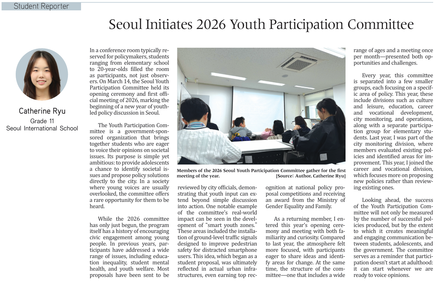 Seoul Initiates 2026 Youth Participation Committee (by Catherine Ryu)