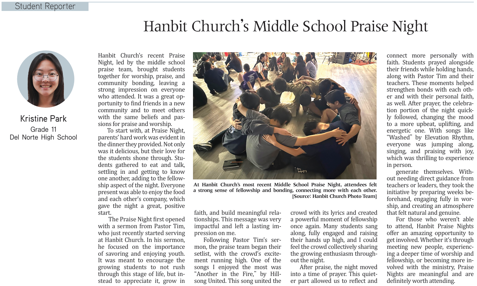Hanbit Church’s Middle School Praise Night (by Kristine Park)