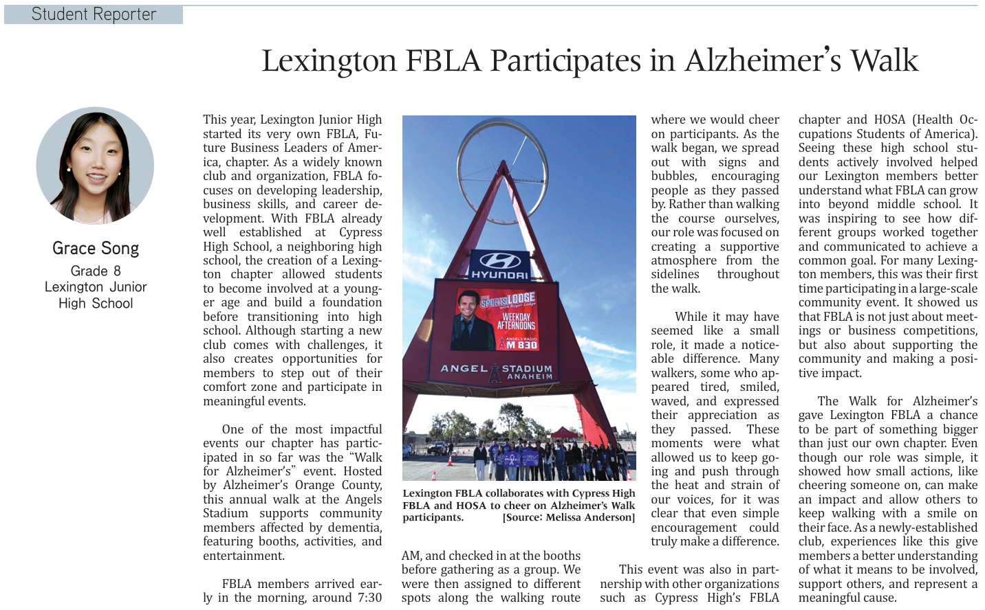 Lexington FBLA Participates in Alzheimer’s Walk (by Grace Song)