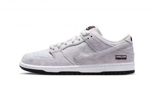 The product is the Nike SB Dunk Low, which features the Kirkland logo, Costco’s private-label brand, incorporated into its design. The sneaker was inspired by Kirkland Signature sweatshirts and uses black, gray, and white tones commonly associated with Costco’s in-house branding.