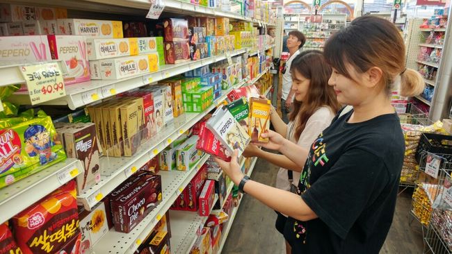 It is now easy to find Korean snack coming out in varying flavors. A customer is contemplating which flavor to pick at Hannam Chain’s snack section.