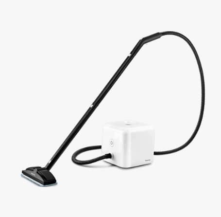 The portable steam cleaners are used for cleaning, sanitizing, and deodorizing in the home. Each unit features a white body and a black hose.