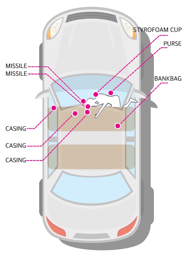 The woman was sitting in the middle front seat, facing the driver. She moved her body and looked around, but didn’t appeared to be either scared or alarmed, suggesting that she was having a normal conversation. Thirty minutes later, Rice heard two gunshots from her apartment.