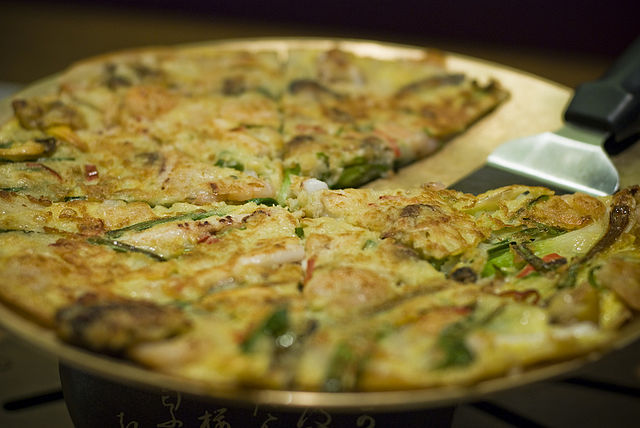 Pajeon is the first dish Koreans think of when it rains. The scallion pancake, which sometimes is made with additional ingredients like kimchi or seafood, has been loved by Koreans especially on rainy days.