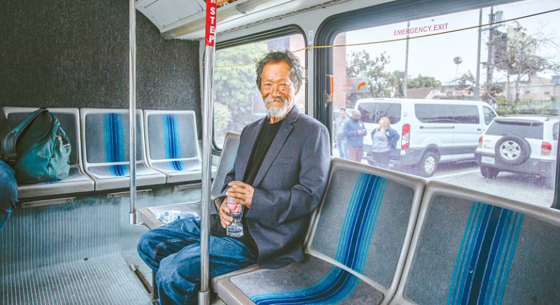 Former Agape Home Mission pastor Kangwon Lee, who had lived on the streets for seven and a half years without a tent, also boarded a city-provided Dash bus to the motel. “There were some things in my life that are a bit hard to talk about,” Lee said. “But I think I will stop living on the streets now. It would be very nice to live in a motel.”