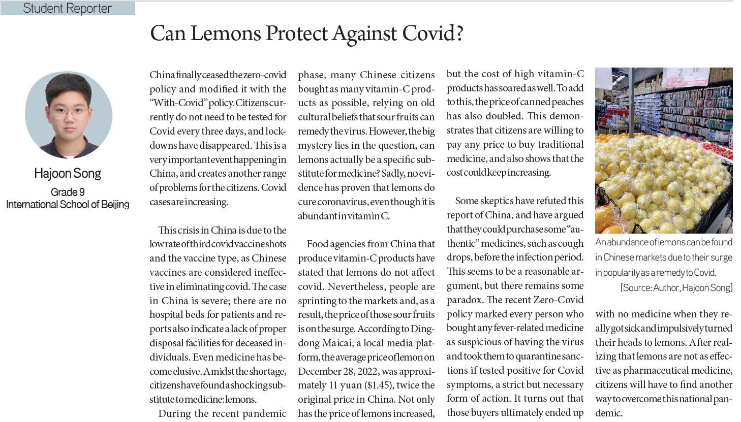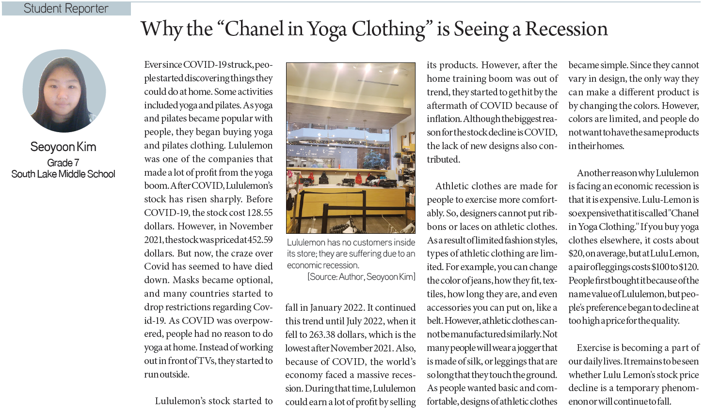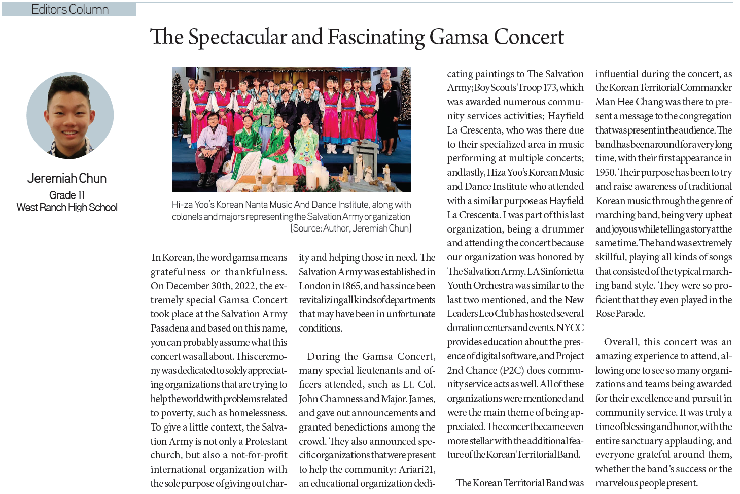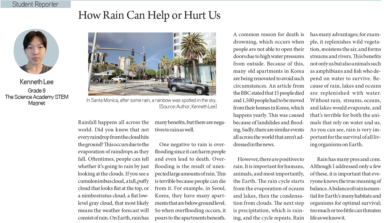 Jeremiah Chun / Grade 11 / West Ranch High SchoolKatherine Cha / Grade 11 / Herricks High SchoolHajoon Song / Grade 9 / International School of BeijingKenneth Lee / Grade 9 / The Science Academy STEM MagnetSeoyoon Kim / Grade 7 / South Lake Middle SchoolAshley Seong / Grade 9 / Ruben S. Ayala High School