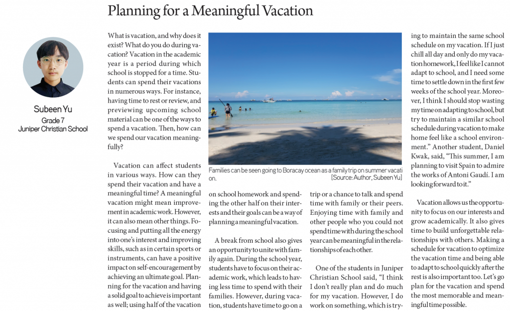 Jiyong Kwak / Grade 8 / Juniper Christian School