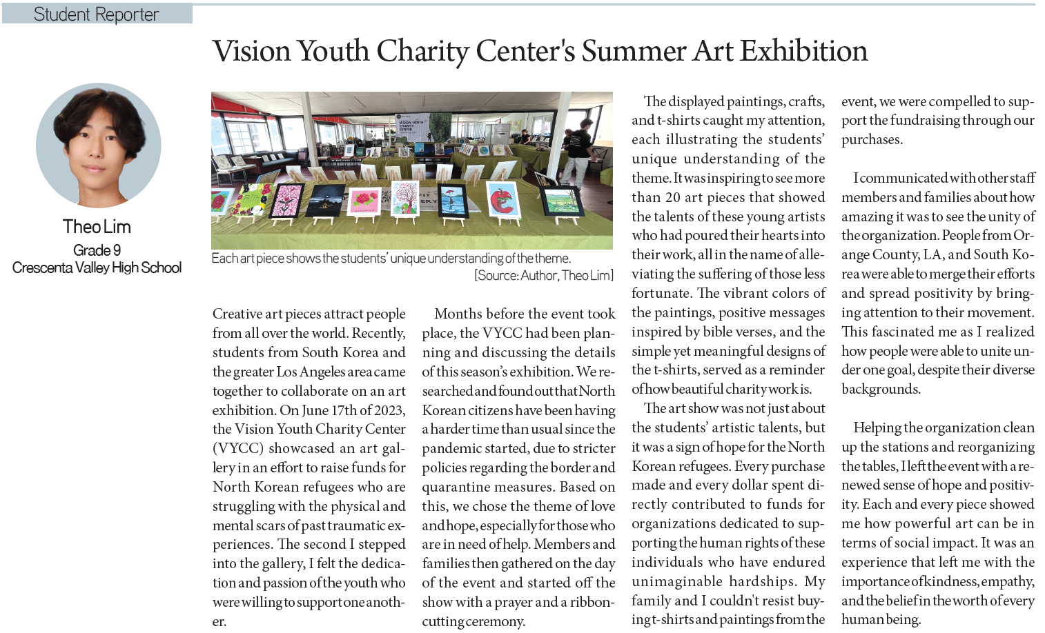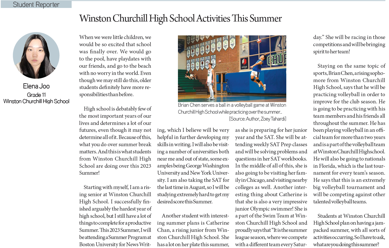 [KD Student Reporters] Winston Churchill High School Activities This Summer (by Elena Joo) By Korea Daily Digital Jun 28, 2023 1:54 PM PDT Newspaper PDF Download #Zoom in on the article image on click Theo Lim / Grade 9 / Crescenta Valley High School Hahn-Saem Lee / Grade 11 / Northside College Preparatory High School Aspen Lee / Grade 8 / Santa Fe Christian Middle School Ethan Chang / Grade 11 / Stockdale High School Elena Joo / Grade 11 / Winston Churchill High School Jiseong Yoo / Grade 10 / Sunny Hills High School Share FacebookXPinterestWhatsApp Korean War Veteran Newspaper Reader Marks 100 Years Mar 20, 2026 4:52 PM PDT Still $1.50? Costco CEO Vows to Never Touch the Hot Dog... Mar 20, 2026 3:07 PM PDT Ha Ji-won vs. Demi Moore: The Truth Behind Their Extreme Weight... Mar 20, 2026 1:24 PM PDT BTS Swim Tops Charts: Why the World is Diving Into ‘Arirang’ Mar 20, 2026 1:19 PM PDT Load more