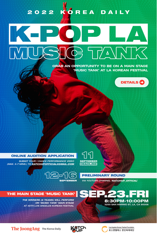 Our team will screen all applicants and choose up to 6 dance groups based on the online vote (50%) and judge’s point (50%), allowing them a spot on the main stage ‘Music Tank’ at 49thLos Angeles Korean Festival. Those 6 selected dance groups will be announced via email on Sep 17th.