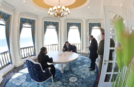 Photographs released by North Korean media showcased multiple instances of Kim Ju-ae alongside her father. In one series of images, the two were seen walking arm-in-arm along the beachfront. Other photos depicted them sitting together at a separate table, apart from other officials, or holding hands while inspecting hotel rooms, swimming pools, and other interior facilities.