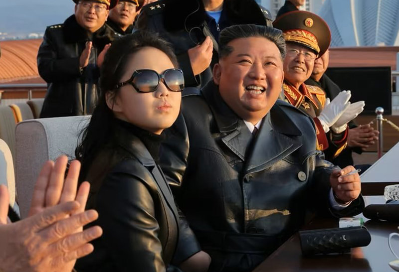 Although Kim Ju-ae holds no official government title, she has gained significant public visibility since first appearing in state media in November 2022 during a photo session in front of an intercontinental ballistic missile (ICBM). Early images typically showed her smiling or standing behind Kim Jong-un. However, since last year, she has increasingly appeared in front of him in photo compositions, often with a composed or expressionless face.