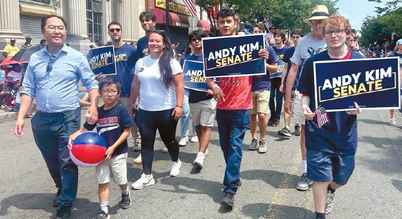 Andy Kim with his supporters at the July 4th parade [Andy Kim’s Campaign]