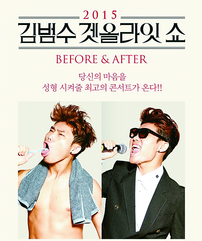 - Description: Popular Korean vocalist Kim Bum-soo returns to America to entertain audience with his advanced, soulful, and humorous performance. Witness his greatness on the stage.