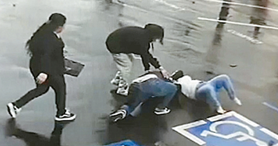 In CCTV footage released from inside the store, manager Marlene Sandoval, 32, struggled with the robbers and was dragged out into the parking lot outside the store and thrown to the pavement. Sandoval stumbled back to her feet but was knocked to the ground by the attackers’ continued assault.