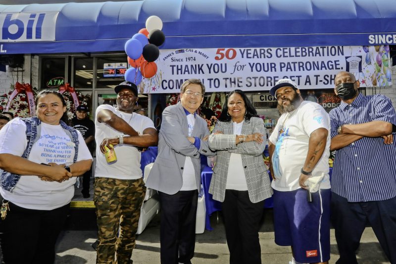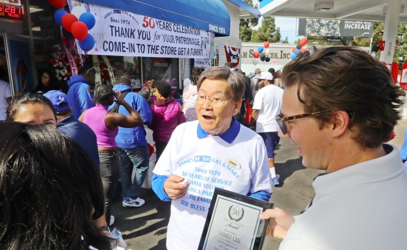 The gas station’s 50th-anniversary celebration brought together public officials and local residents to thank Lee for his support of community causes.
