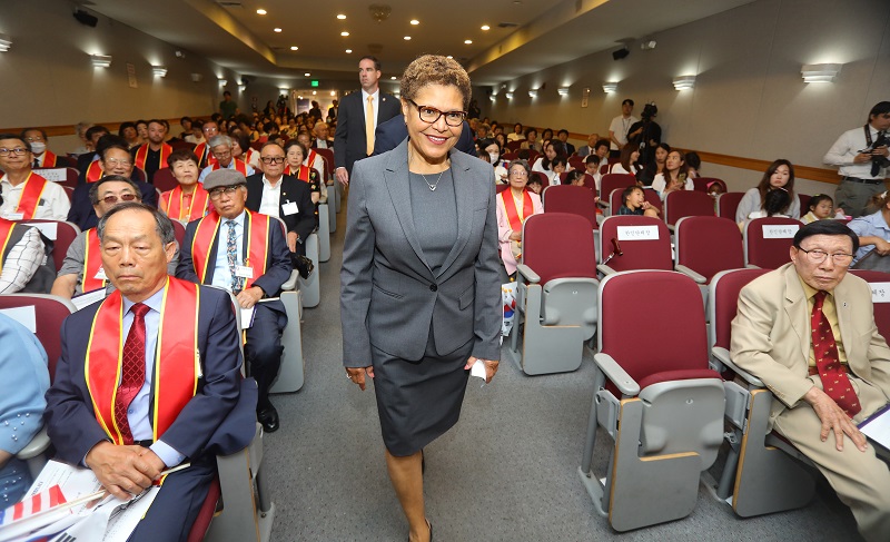 Notably, this year saw the attendance of LA Mayor Karen Bass at the ceremony, where she delivered a congratulatory message. Additionally, 27 descendants of independence movement patriots residing in Southern California participated in the event to honor their ancestors who valiantly fought for Korea’s independence.
