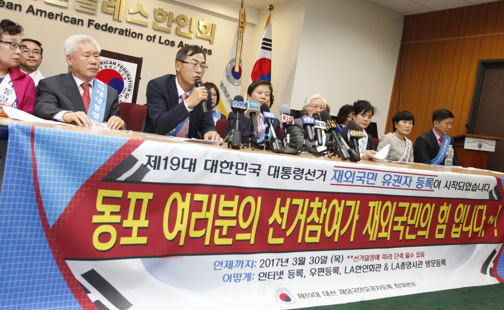 Korean American Federation (KAF) of L.A. and the South Korean consulate office announced Tuesday that 10 community organizations are collaboratively launching a campaign to help more South Korean citizens in the U.S. to register as voters with the presidential election set to take place earlier than expected after President Geun-hye Park was recently ousted following an impeachment.