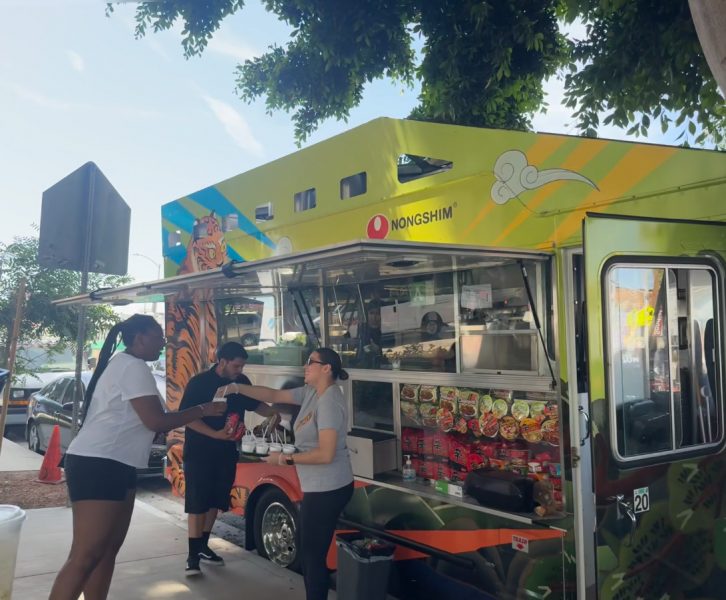 On August 11, Nongshim opened a food truck-based pop-up store on Melrose Avenue. The company gave away one free pack of Shin Ramyun and Chapaghetti to participants of the surprise event and provided a chance to taste the noodles.