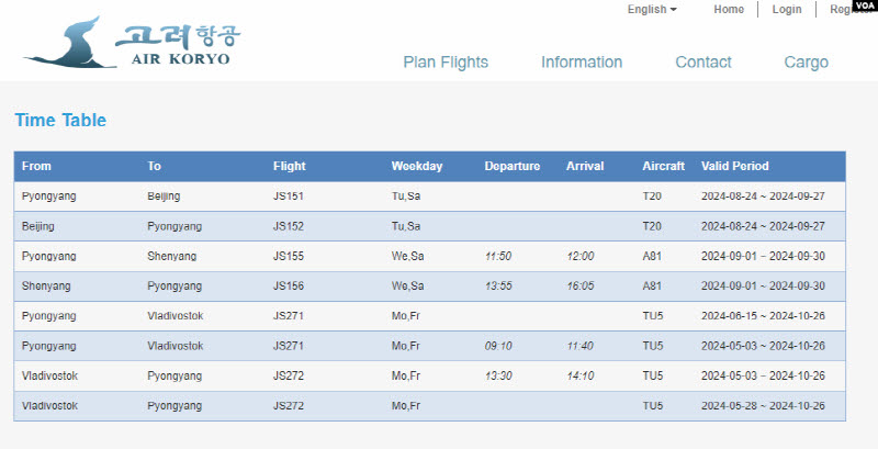 In contrast, flights to China have been reduced. VOA previously reported that Air Koryo suspended its JS251 and JS252 flights, which operated between Pyongyang and Beijing on Thursdays. As a result, the airline now only operates JS151 flights to Beijing on Tuesdays and Saturdays, reducing service from three flights per week to two.