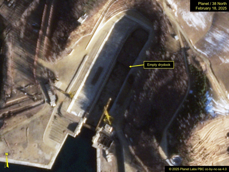 According to 38 North on February 19, the submarine was first moved to the dry dock in mid-May 2024, and by July, a protective covering was installed over it.