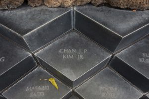 Each pedestal has an engraved name of the U.S. soldier from Hawaii who perished in the respective conflicts. The names of Korean American U.S. soldiers who served in these wars were etched on many pedestals. Chan J. P. Kim Jr. is also on one of the pedestals. “An old gentleman comes here roughly once a month and wipes all of these clean. It’s about time for his next visit,” said Sebastiano Vani, a security officer at the Hawaii State Capitol.