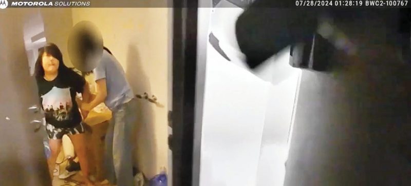 The weapon is blurred in the body cam, but according to the Lee family’s lawyer Sukjin Cho’s account of the original video, Lee confronted the officers after the door was opened, holding the weapon in her left hand and a bottle of water in her right. Her mother allegedly held her arm while she held the weapon. The prosecutors have kept the position that Lee was armed with the weapon, exited the door, and approached the officer in the hallway, to which the officer responded.