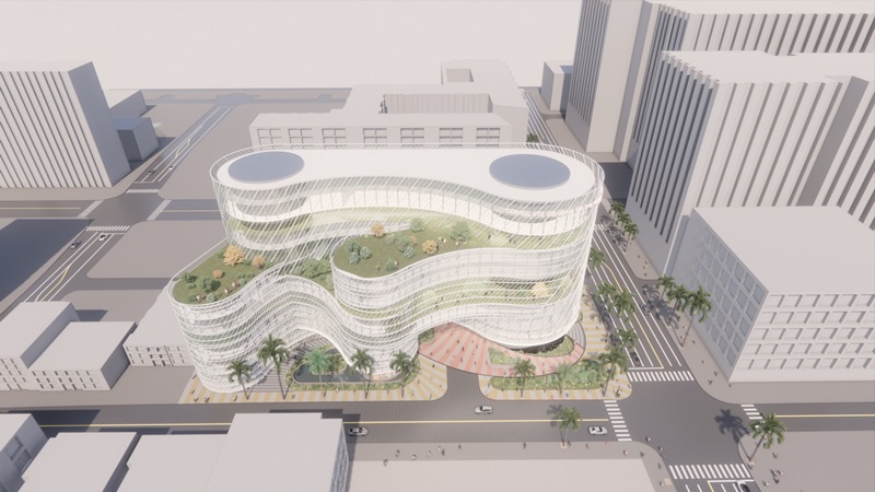 The Liberty Park design focuses on addressing Koreatown’s critical lack of green space. The plan includes elevated walkways above the streets, providing both green areas and community spaces. By creating a multi-level design, the project maintains green space while incorporating pedestrian-friendly pathways.