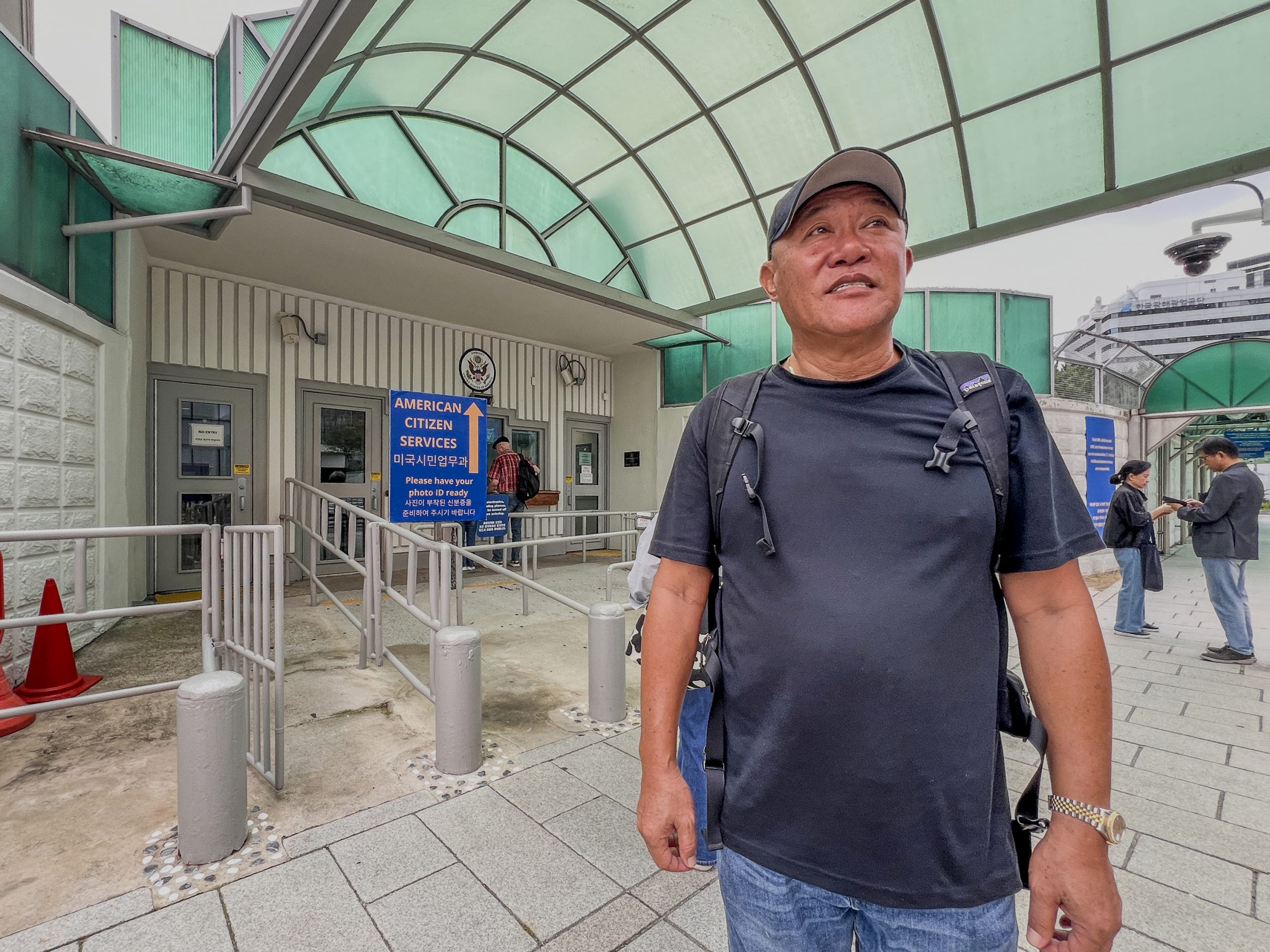Park Sae-jun stands in front of the U.S. Embassy in Seoul, located near Gwanghwamun Square.