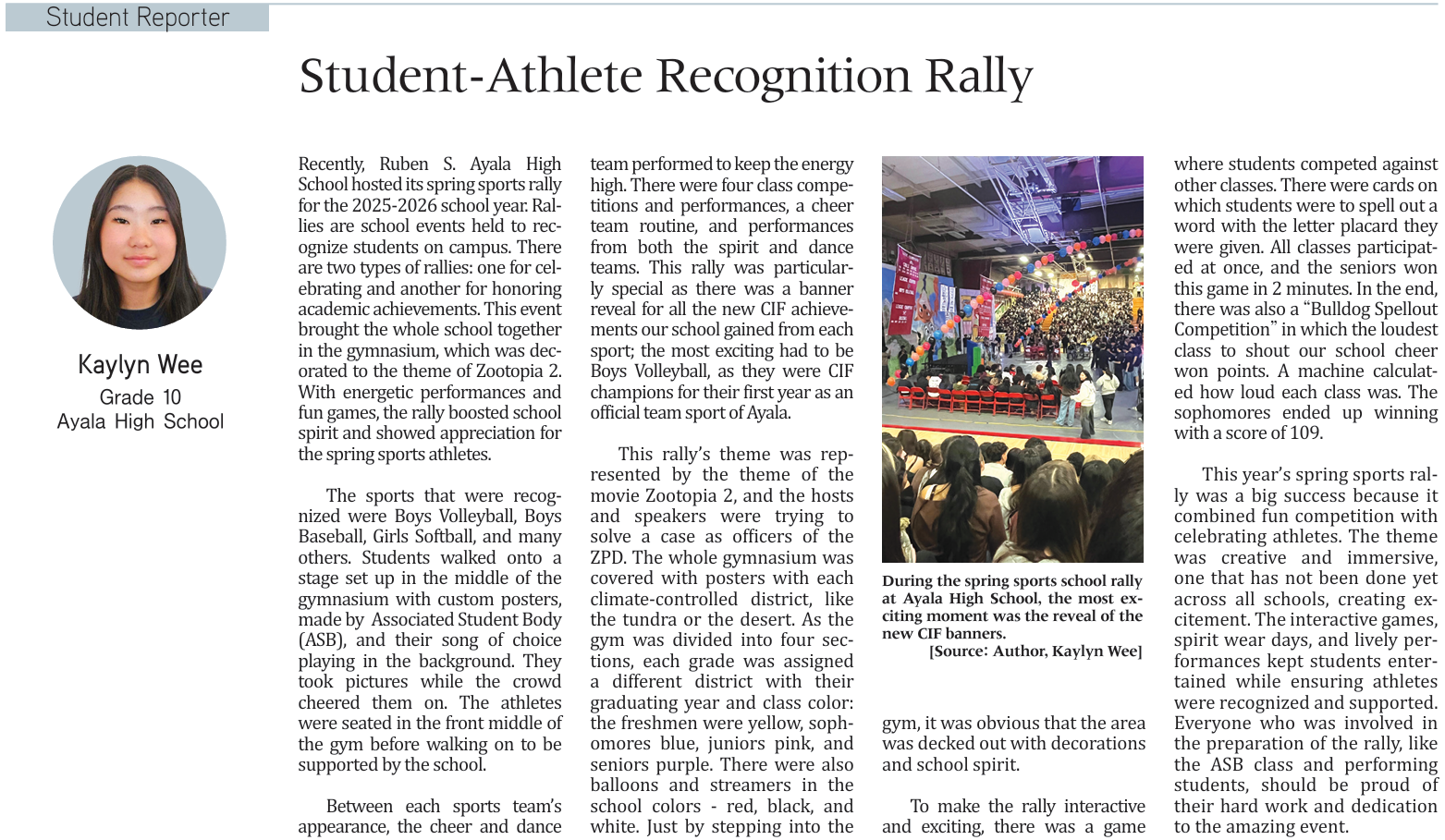 Student-Athlete Recognition Rally (by Kaylyn Wee)