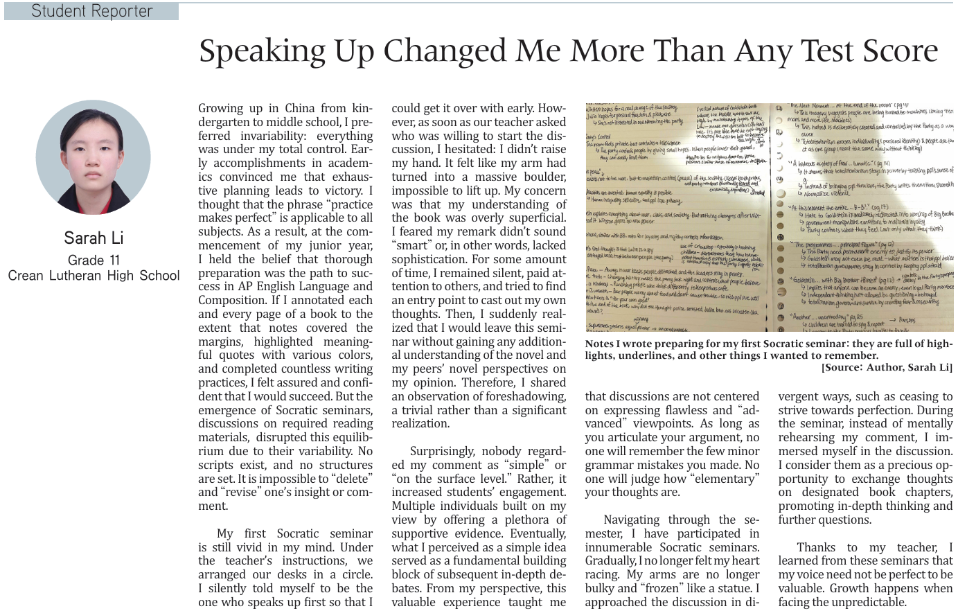 Speaking Up Changed Me More Than Any Test Score (by Sarah Li)