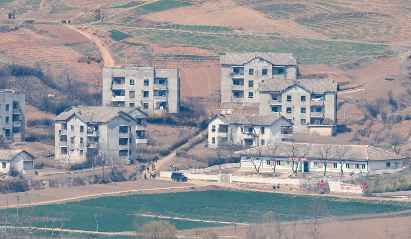 The Jogang Observatory is located on Aegibong, a peak 154 meters (505 feet) above sea level near the intersection of the Han and Imjin Rivers, which merge into the Jo River and flow to the Yellow Sea. It offers a view into Kaepung County, North Korea.