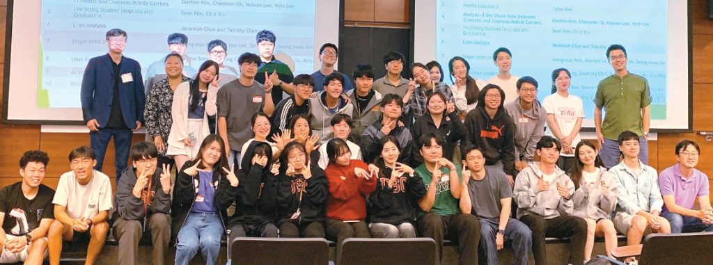 Second place went to Yugyeong Ji, Hyeonji Park, Junseo Jung, and Yumin Shin, who developed a program to predict MBTI using posts on social media. Third place was awarded to Sean Kim and Elliott Yoo, who developed an analytics program to predict students’ likelihood of dropping out of school, and to Byungjun Kim, Yewon Hong, Donggun Lee, and Chunyoung Park, who developed an automatic sign language recognition program using artificial intelligence (AI).