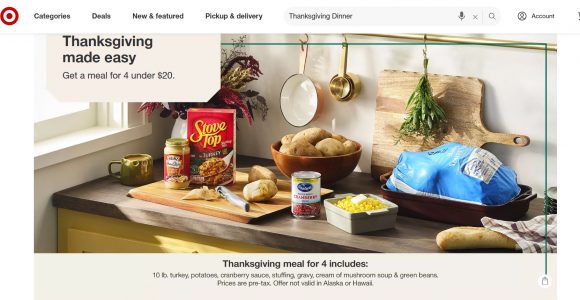 Target has launched a budget-friendly Thanksgiving dinner deal priced under $20, joining Walmart, Amazon, and Aldi in a growing holiday price war. The set is designed for a family of four, costing less than $5 per person, which the company calls its “most affordable set ever.”
