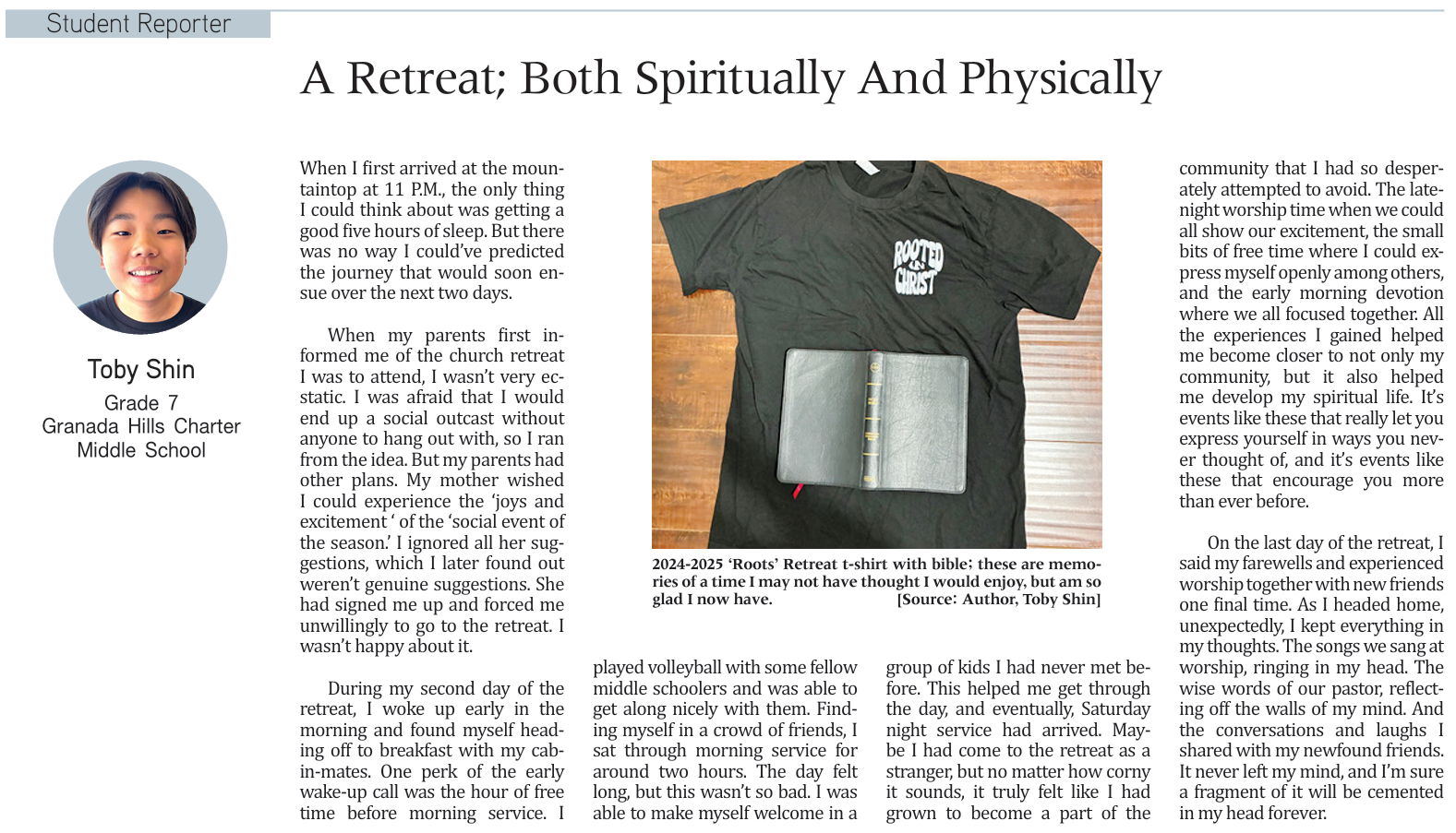Toby Shin / Grade 7 / Granada Hills Charter Middle School
