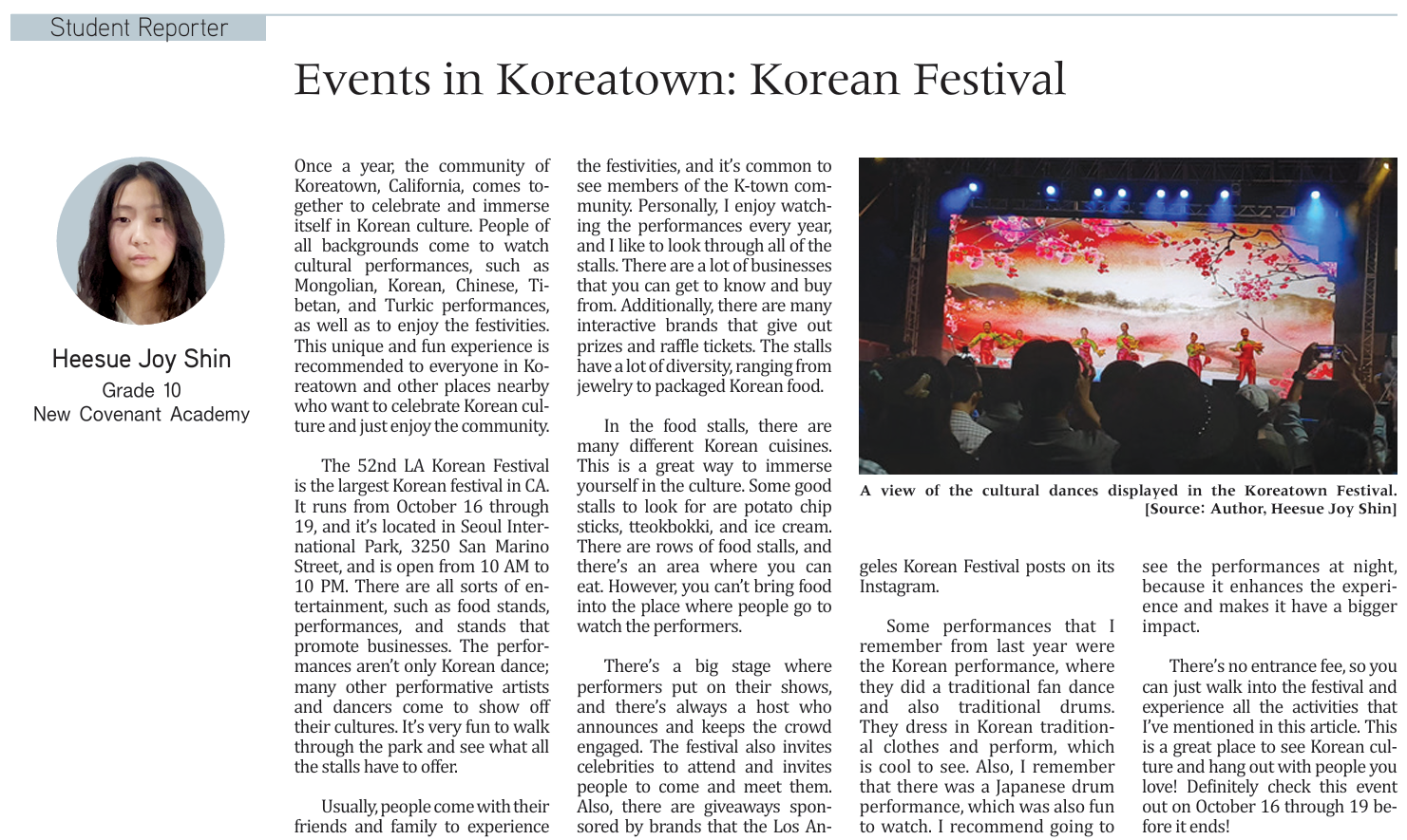 Heesue Joy Shin / Grade 10 / New Covenant Academy