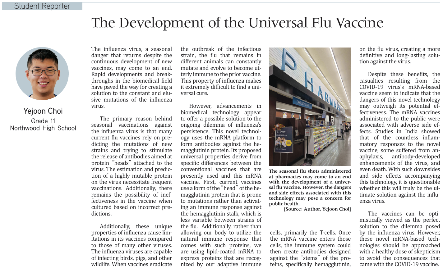 The Development of the Universal Flu Vaccine (by Yejoon Choi)