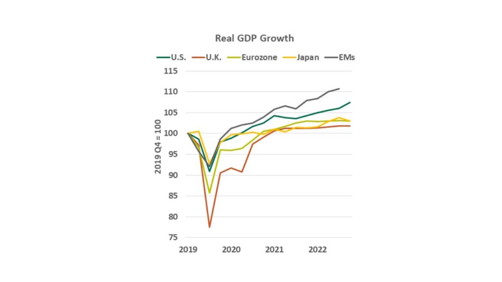 In Latin America, the economic outlook is mixed. Countries like Brazil, Peru, and Chile are struggling with high inflation and interest rates. Their economic growth is hampered by reduced commodity exports to China and political instability. Mexico, however, stands out due to its strong economic ties with growing exports to the U.S.