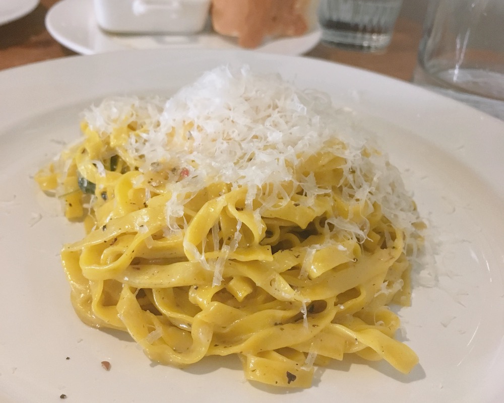 The quiet Italian restaurant pays much attention to the basics. Pastas here made with house-made wet noodles prove that.